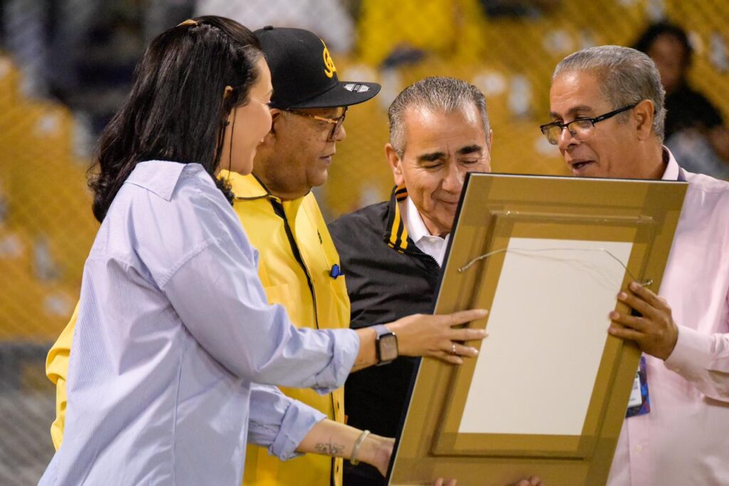Pérez recibió una placa de reconocimiento de manos de Víctor García Sued, presidente del Consejo Directivo de los 22 veces campeones nacionales y seis veces monarcas caribeños, junto a Américo Cabrera, presidente de la ACDS.