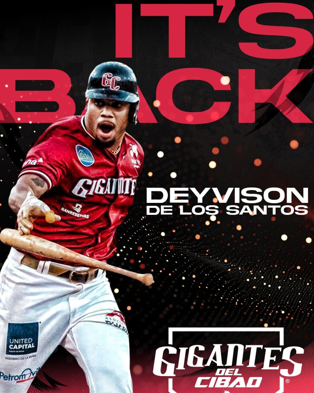 El regreso de De los Santos representa un refuerzo de gran importancia para la alineación de los Gigantes del Cibao y refleja el alto nivel de compromiso que mantiene este joven talento con la organización y con la causa Gigante.