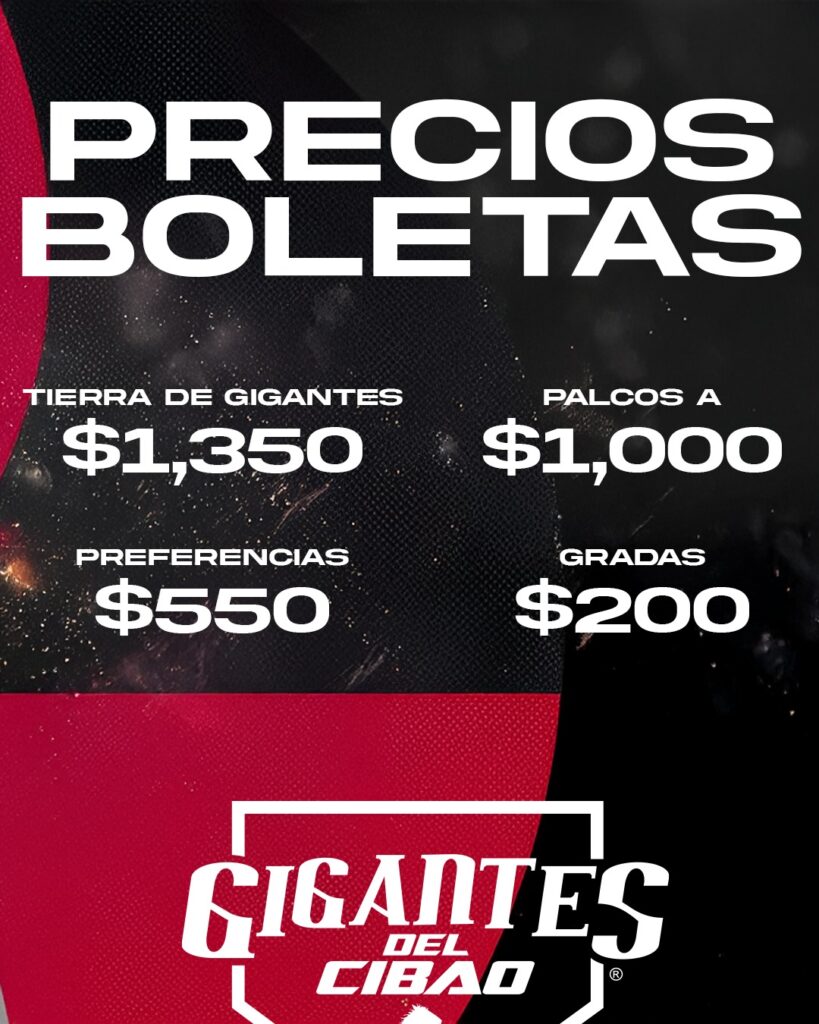 San Francisco de Macorís. — Los Gigantes del Cibao informaron los precios oficiales de las boletas y abonos para la fase del Todos Contra Todos del campeonato de la LIDOM, correspondiente a los partidos que se disputarán en el estadio Julián Javier.