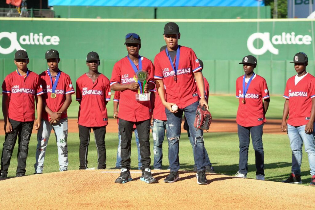 SANTO DOMINGO.- Los campeones nacionales y del Caribe Leones del Escogido rindieron homenaje este sábado al equipo dominicano de la Serie del Caribe Kids que obtuvo en julio pasado el bicampeonato del evento en Venezuela.
