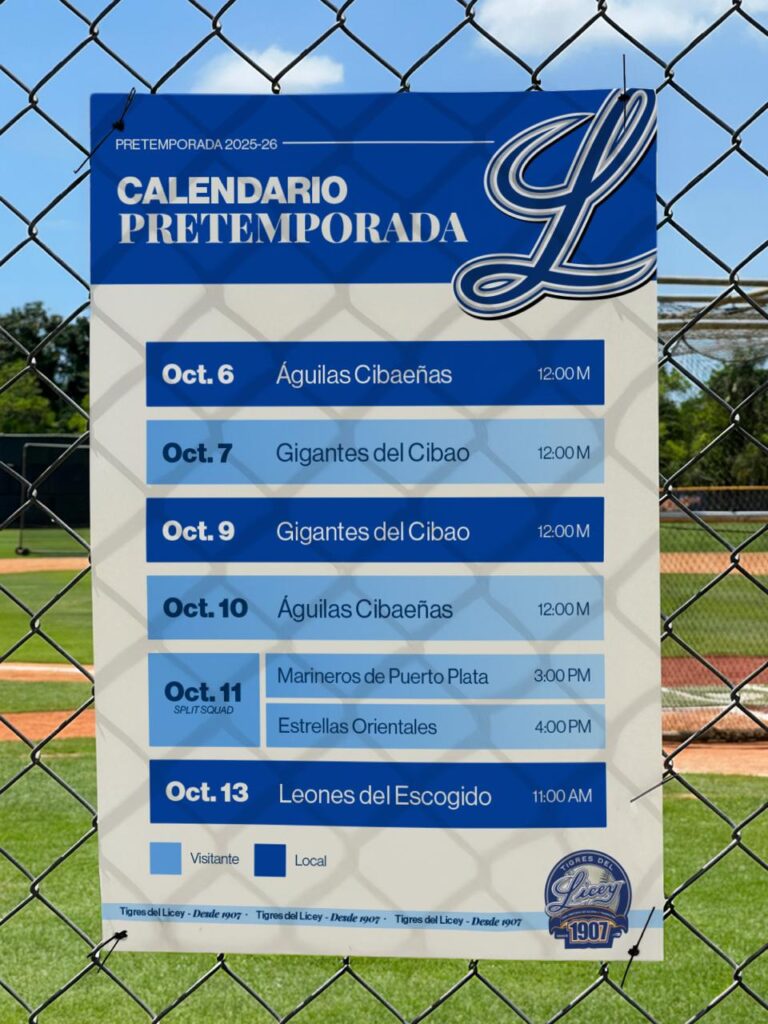 Los 24 veces campeones nacionales, Tigres del Licey anunciaron el calendario de sus partidos de pretemporada con miras a la temporada 2025-26 de la Liga de Béisbol Profesional de la República Dominicana.