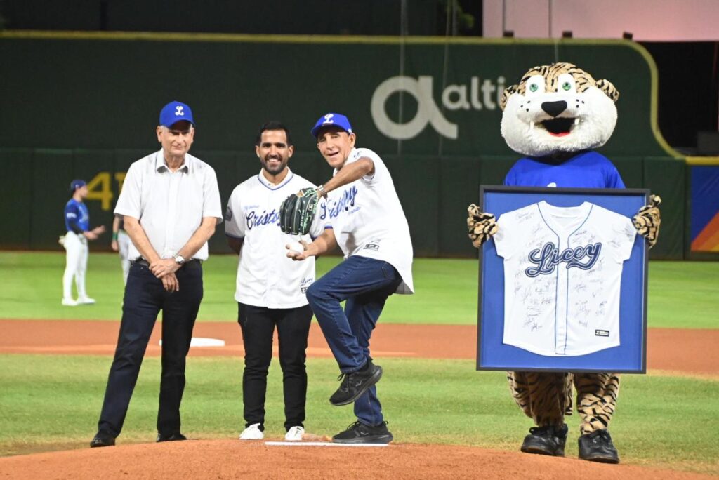 Cruz Jiminián, quien asistió junto a su hijo Luis Cruz, recibió una placa de reconocimiento de manos del jugador Ronny Mauricio, quien también fungió como receptor de honor. En el montículo azul, estuvo acompañado por Parmenio Rodríguez, gerente administrativo del club Atlético Licey.
