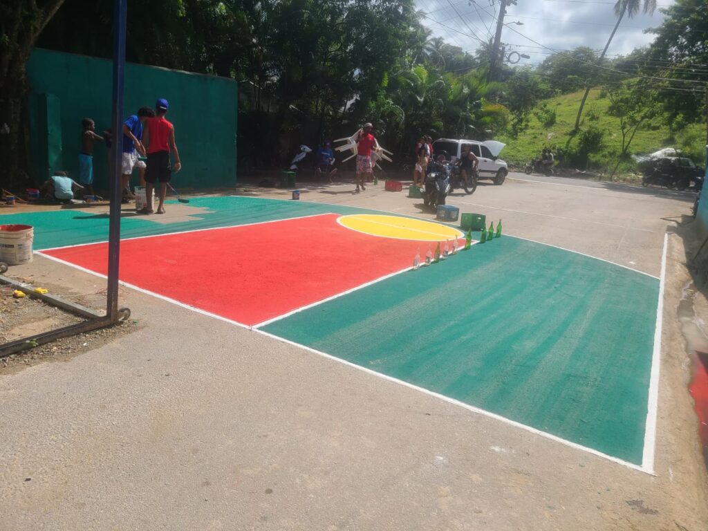 La emblemática Pescadería Wanda dentro del amplio programa de ejecuciones deportiva que implementa en la región remodeló la cancha de baloncesto 3×3 de la comunidad el Naranjito del municipio de las Terrenas provincia Samaná.