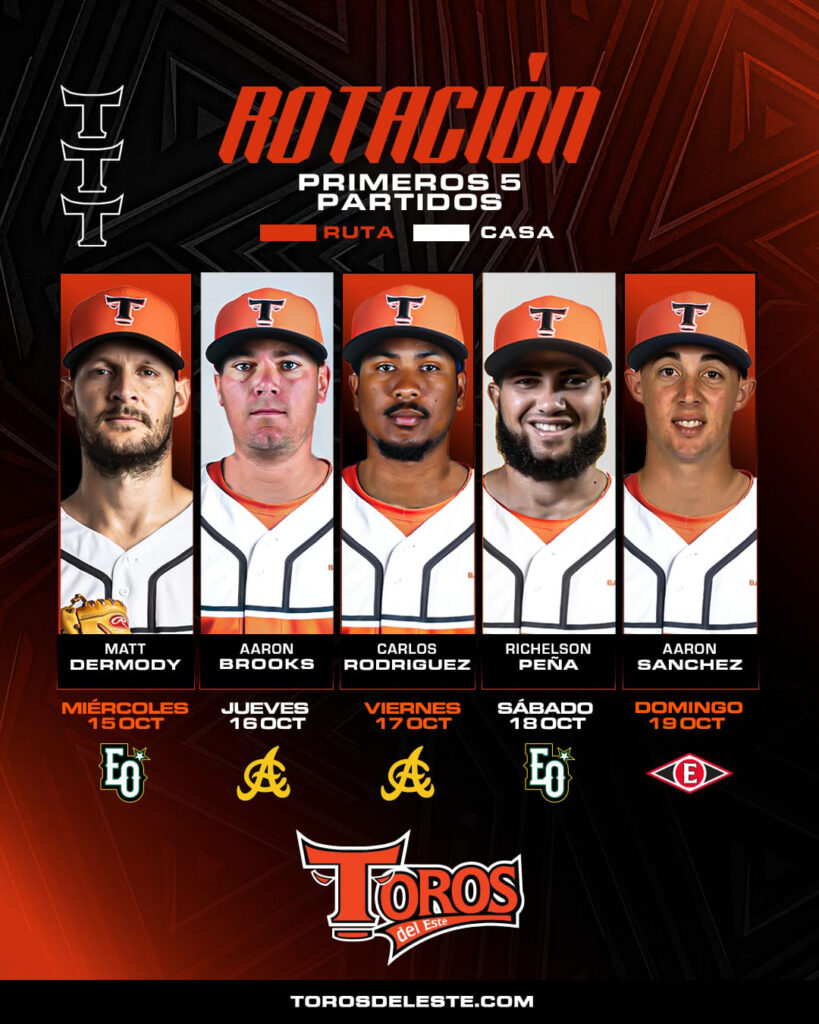 LA ROMANA.- Los Toros del Estee anunciaron su rotación abridora para el inicio de la temporada 2025-26, dedicada al inmortal Juan Marichal.